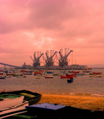 sob a penumbra imensa dos guindastes